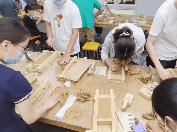 2022年7月20日,小队又一起前往秦淮·非遗馆,体验了一项趣味横生的南京明城墙城砖制作活动。在参观非遗馆的过程中,成员们恰逢非遗馆的老师带领一群小朋友们学唱“城门城门几丈高,三十六丈高……”的童谣,然后细致地向他们讲解了南京明城墙丰富多彩的典故,成员们也随之受益颇多。