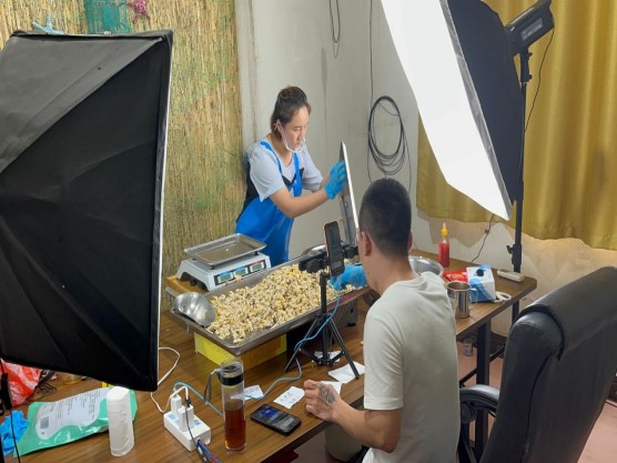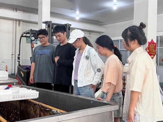 调研团首先来到连云港市景华食品有限公司开展调研,在公司负责人韩先生的带领下,参观了公司的储藏室和速冻库,并了解到相应的冷链销售和物流运营方面的现状。随后,团队成员前往海头电商产业园,网红孵化中心的王书记向队员们展示了部分海头镇特色网红零食,参观了公司的产品直播间,了解了海头镇电商产业园曲折的发展历程。