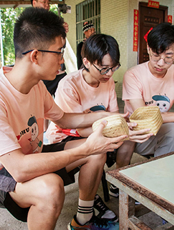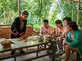 澜沧有着丰富的民族非遗文化资源,实践团在富邦乡团委副书记曹芝才的带领下首先前往赛罕村拜访竹条编织技艺非遗传承人李扎而,纯手工竹编不仅实用而且做工非常细致。接着实践团前往佧朗村考察,领略了拉祜族传统布编技艺,亲手实践了白坯布的纺织和肩带的编制,仔细研究了拉祜族编织方式与颜色选择倾向,收集了大量文化资料用于进一步研究。队员发现拉祜族的编织以手工攒动为主,花色均为当地妇女一丝一线手工制作。实践团也发现繁复的编织技法、缺乏销售渠道导致该地编织产品虽美丽优质,却外销困难。实践团进一步了解到拉祜族非遗文化的深厚底蕴,本土居民对其的喜爱与重视以及他们如今对于非遗文化的传承所面对的困境。拉祜地区相当重视对本土文化的传承工作,在走访勐朗镇中心小学,通过校长介绍实践团了解到澜沧县每个乡镇通过开设希望小课堂有意识的去培养儿童对于少数民族文化的技能学习与传统非遗传承。