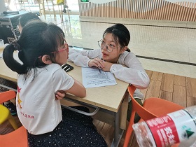 留校实践团成员和“小候鸟”们围坐在一起,队员们根据采访问题,与“小候鸟”进行了亲密的沟通交流,并详细地记录了采访的内容。有些小朋友们在最开始进行交流时还有些腼腆害羞,不敢表达,但在队员们的耐心引导下,还是渐渐敞开了心扉,愿意跟队员们表达心里的一些想法。队员们在采访的同时,也同小朋友们分享自己的童年趣事,拉近与小朋友之间的距离,调节采访的氛围,让现场充满了欢声笑语。通过跟“小候鸟”的沟通交流,队员们感受到了他们对生活的热情,对父母的关心与爱;同时,也惊叹于他们的乖巧勤劳。他们有时候揣着心事却无人分享,父母无法常常陪伴在身侧,但他们对父母是体谅的,是理解的。暑期对于“小候鸟”们来说是非常珍贵的一段时间,他们热烈地渴望着父母的陪伴。除此之外,根据队员们的了解,“小候鸟”们有着较好的饮食习惯,挑食的习惯不常见,注重摄入牛奶、果蔬。