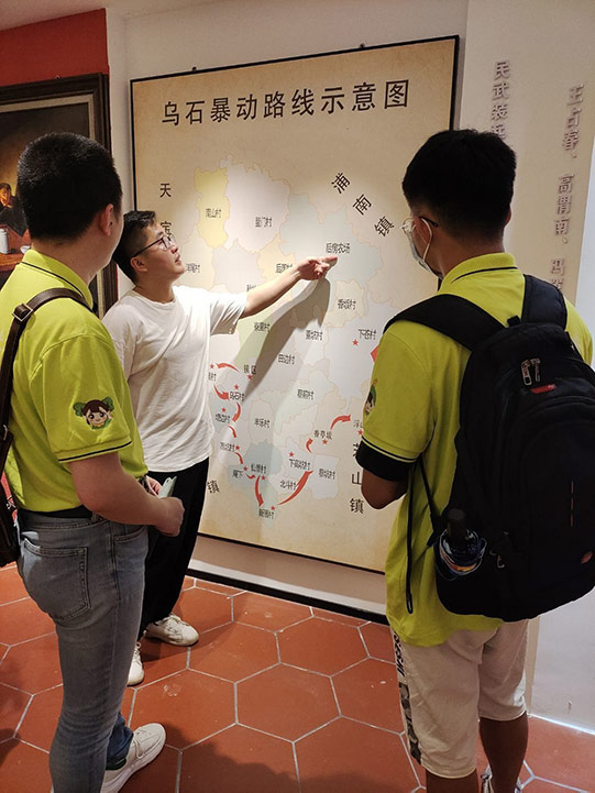 图为何河长为三下乡团队讲解乌石暴动路线图重温革命历史。