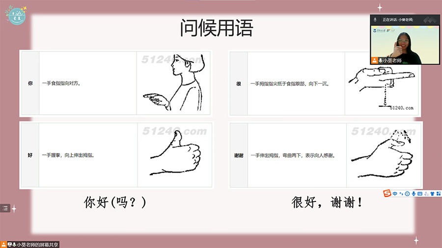 图 4 在手语课堂上老师正在教学问候用语的手语动作