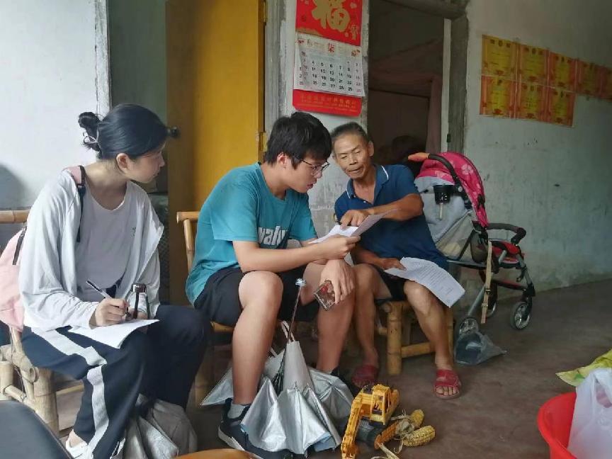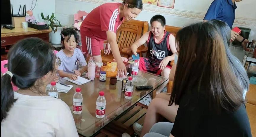实践队队员正在了解孩子的情况。
