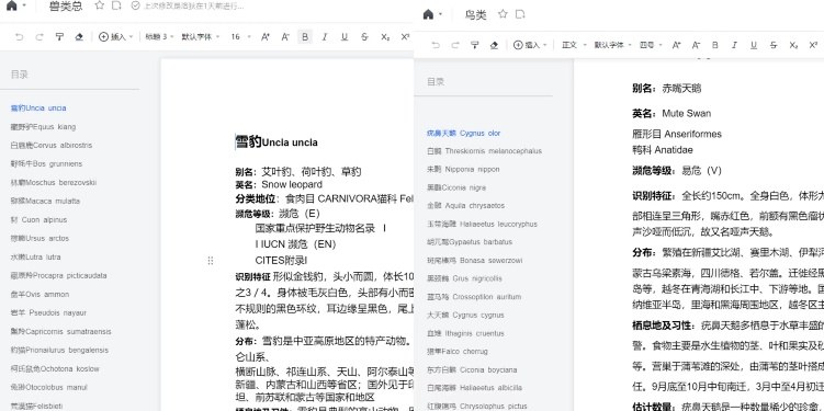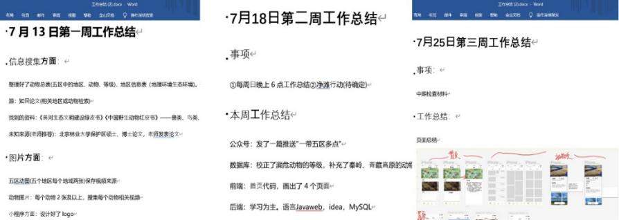 关于动物数据的搜索与整理说明,团队主要收集动物名录习性、分布、保护措施等信息。同时,资料宣传组制作并归档小程序使用的其他文案,其中主要为介绍国家政策、学校的杰出贡献者、黄河介绍。