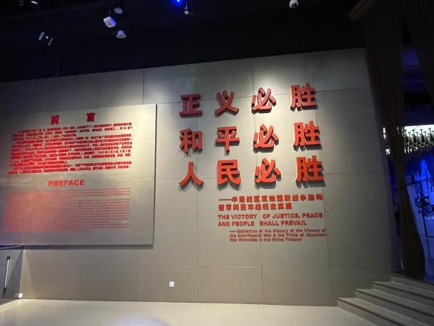 我们还走进了“三个必胜”主题纪念馆。在形似圆筒状的空间内环幕影像、立体声音、专业灯光、艺术纱幕等设计,呈现了德日意法西斯投降后,世界各国人民欢庆胜利的喜悦场景,营造了一个“跨越时空 环球共庆”的大场景,给人带来强烈的视听震撼。三个必胜”主题展共展出图片1100余幅、文物6000余件,充分展示了那段铁血历史,也充分展现了中国抗战胜利的伟大荣光,向我们展示了“正义必胜,和平必胜,人民必胜”,也警示人们铭记历史、缅怀先烈、珍爱和平、开创未来。
