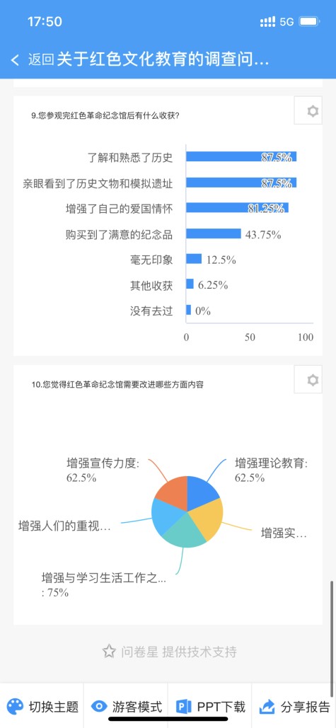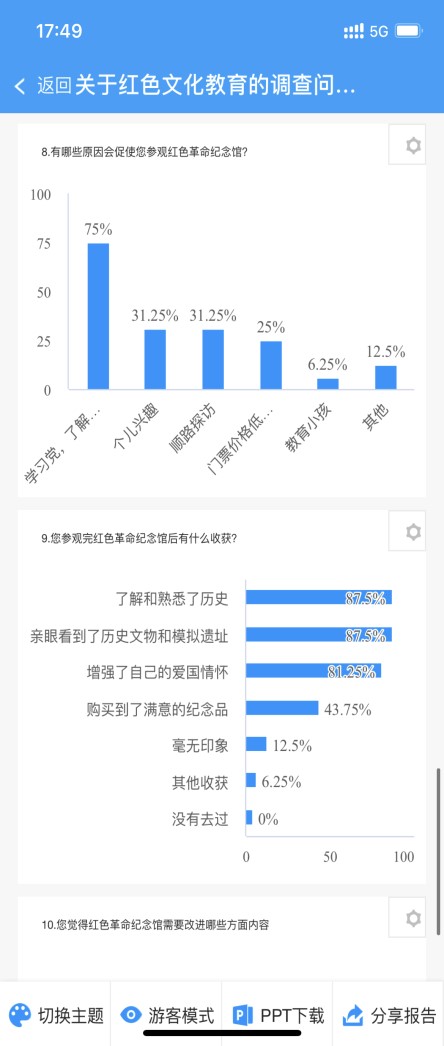 为了保证本次寒假社会实践活动的正常开展,团队成员在初期通过线上沟通讨论,确定了本次实践的具体内容与流程。活动前期通过微博、抖音、微信公众号等线上平台收集了人们对于博物馆的评价进行整理归纳形成问卷,由周昕同学负责收集线上关于“人们对于红色博物馆的看法”问卷调查并且得到一定的结论:目前大众对于参观红色博物馆的主要原因是想了解党的历史,,并且希望博物馆能够增强与学习生活工作的联系。
