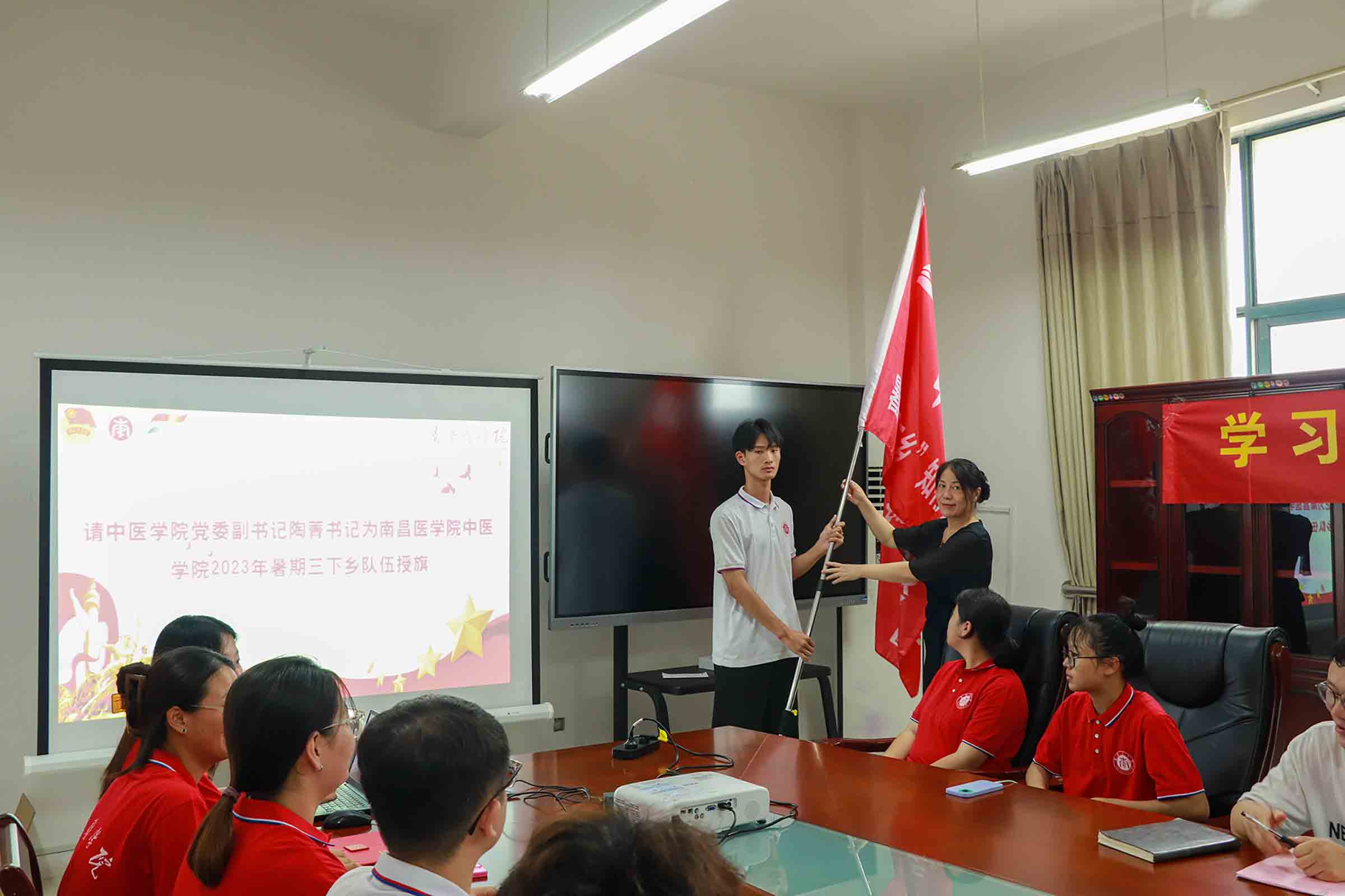图为陶菁书记给学院服务队授旗 邢嘉阳 摄