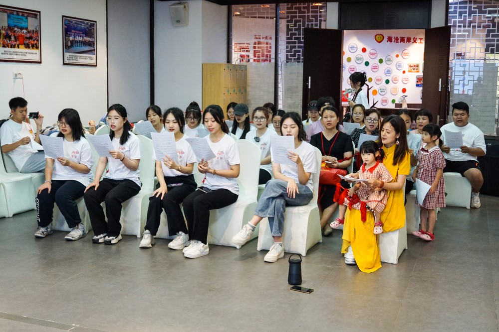 协戏腔,谱新曲,以新意唱出更应时代发展特点的非遗戏曲。在歌仔戏沙龙中,迎着七一建党的节日氛围,实践队队员们与众戏迷在李老师的指导下学唱歌仔戏《党旗飘扬在鹭岛》。“党旗扬,白鹭飞翔,鹭岛腾飞迎繁荣……”众人持着党旗与国旗,学习歌仔戏的特色唱腔,共同传唱党旗飘扬下的鹭岛繁荣新象。