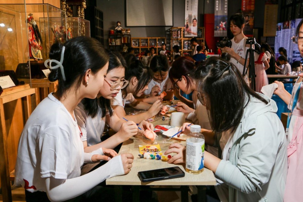 图为实践队队员们为木偶胚子上色,体验布袋木偶的制作工艺。邹炀 供图