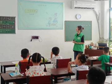 调研期间,实践团来到当地培训班,开设环保主题教育课堂,培养青少年爱护环境、践行垃圾分类的好习惯。实践团成员向小朋友们展开垃圾分类内容介绍,并结合“垃圾分类大富翁,绿色环保小卫士”的游戏来检验小朋友们的学习成果,在寓教于乐中帮助小朋友们更好地理解。