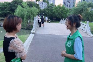 为深入了解当地居民对许村镇环境治理的意见,实践团来到海宁市许村镇龙渡湖公园,对当地饭后散步闲谈的居民进行采访,调研村委会关于环保政策的落实情况。“这里原来是一个很小的池塘,现在的大湖是后面挖出来的,经过多年的治理,里面的淤泥被运出来,周围种绿皮栽绿化,再和外面的河道联通把水引进来,水质才变得好起来,经过整治,龙渡湖如今是许村的网红打卡点。”