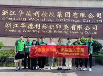 在实地调研中,实践团实地走访了浙江华德利控股集团有限公司——浙江华德利纺织印染有限公司,并于印染厂负责人展开座谈,深入了解企业的发展经历。在负责人的带领下,实践团参观了公司的印染生产线,负责人介绍了该工厂的发展现状:在2005年,染厂只有六条生产线运作,经过这些年快速发展,如今有将近36条线运作,产量净翻六倍。同时,负责人带领实践团参观了染厂的生产车间。“对于近些年的环保减排政策,我们染厂也在及时更进,在生产方面我们会引入一些新设备,减少老设备带来的一些损耗和污染。在检测方面,我们也会在设置实时监测装置,控制各项指标在允许范围内。”在与负责人的交谈中实践团了解到企业为响应“美丽浙江”政策所做出的举措。最后,负责人也表示企业会在提升企业经济的同时注重环境保护,也希望全国企业都能更加重视节能减排,为建设美丽中国承担一份责任。