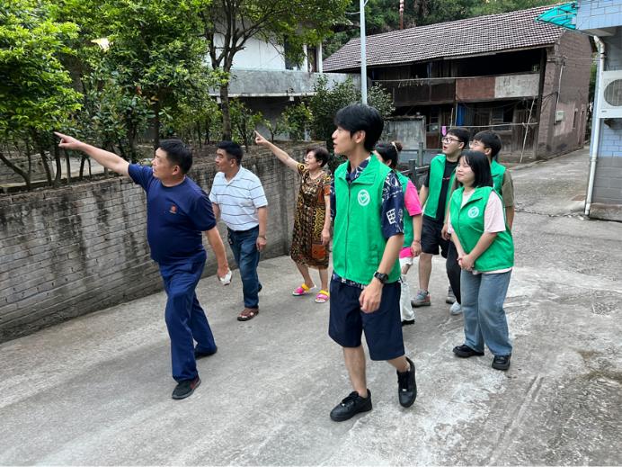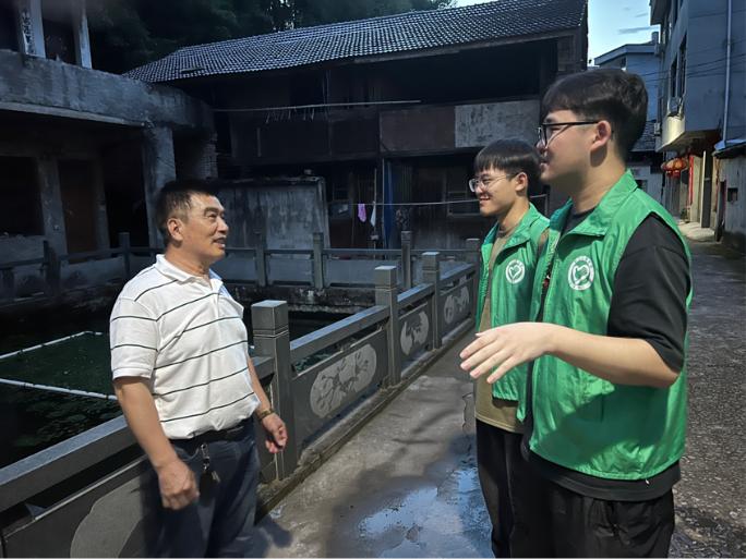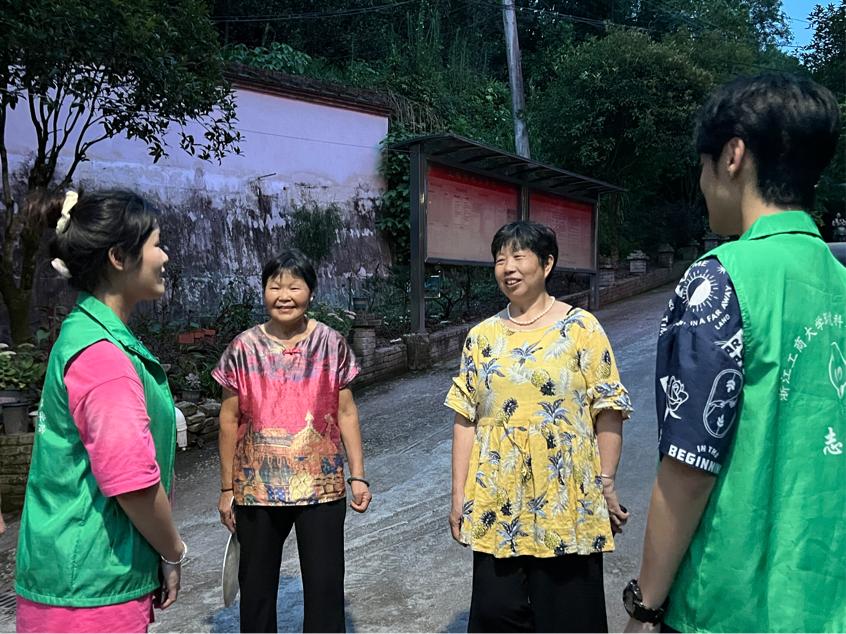 傍晚,天气稍凉爽。实践团来到村中,对饭后散步闲谈的村民进行采访。