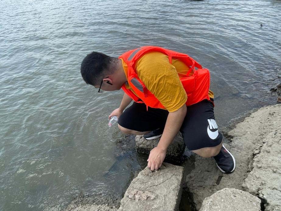 6月28日,小分队进行外出采样。到达水域之后,在老师的指导下,同学们在做好安全措施的前提下,圆满完成了任务。团队成员首先观察河流湖泊的水势状况,普遍水域受到不同程度的污染,水质浑浊不清,挑选水流速度适当的水段进行重复洗瓶采样,保存好样品并做好相应的数据记录。除此之外,还记录水域附近的植被生长情况,充分分析各方面影响因素,为之后制定治理方案做充足准备。