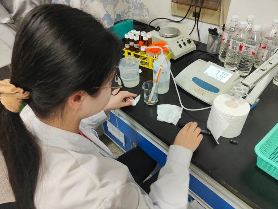 7月1日至25日,团队成员对采集的水样进行了实验室检测分析,对水样中的关键指标进行测试分析,包括COD、pH、DO、总氮、总磷、有机污染物等。研究发现秦淮河水段整体偏碱性,溶解氧含量整体偏低、总氮含量偏高,存在一定的富营养化现象,水质保护工作刻不容缓。