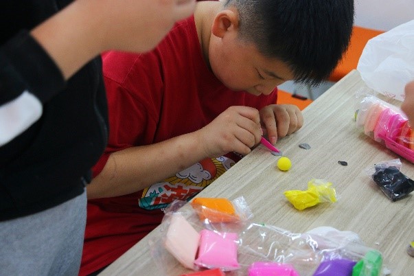 志愿者给小朋友们讲解了手工捏彩泥的方法和技巧。在制作过程中,志愿者鼓励小朋友们发挥自己的想象力和创造力,并及时给予指导和帮助:如何使用工具、如何混合彩泥得到需要的颜色等。