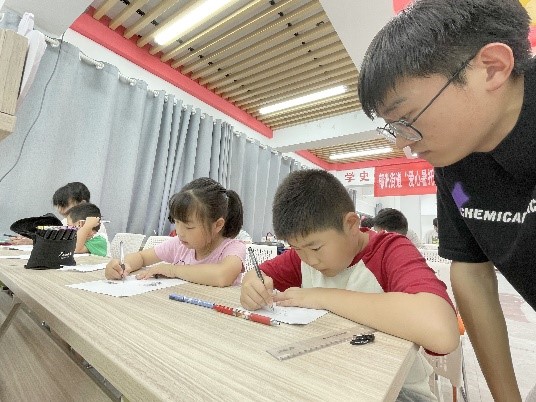 志愿者每日耐心为孩子们解答课业困惑,仔细检查暑假作业,并对不同孩子的错误题目举一反三,实现针对性教学。