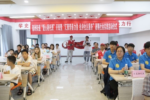 经过前期学院与街道的充分沟通,7月10日上午,暑期社会实践启动暨 “爱心暑托班”开班仪式在西凤社区顺利举行。海州团区委书记程娅、电子工程学院党委副书记张玲等领导出席,电子工程学院师生、郁洲街道党员志愿者、西凤社区工作人员和家长学生共计60余人参加活动。