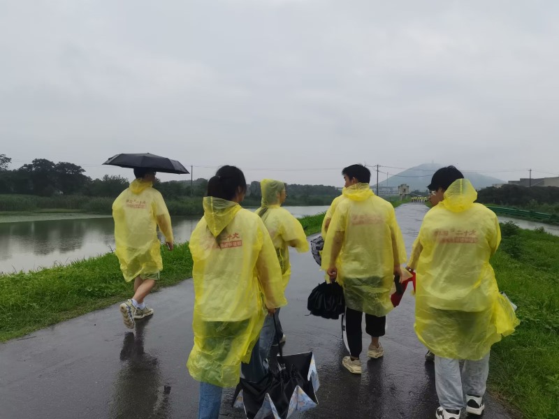 在活动的第一天,伴着一身晴朗的阳光,志愿小队来到了花山小学,志愿者通过PPT、视频、讲相声和填色卡纸等多种方式,为小朋友们讲解农耕文化,充分的向小朋友们展现了我国优秀的文化底蕴。休息一天后,志愿者前往社区街头,以问卷调查的形式收集了当前农村地区农作物的收成情况和耕地情况,并对群众的农耕文化常识做了大致了解。隔天,志愿者又将目光转向了战前村,夏日的雨总是充斥着燥热与难耐,尽管如此,志愿者依旧只身前往泥泞的田地里,进行除草工作。经过长时间的辛勤劳作,菜地里的杂草几乎被除尽,志愿者的队服也早已被汗水打湿。可看到队服上“奋进新征程”五个字,每个人的眼神愈加坚定,青年志愿者,奋斗正当时。志愿服务的最后一天,志愿者在战前村进行常规的问卷调查后,以激动的心情结束了本次“三下乡”社会实践活动。