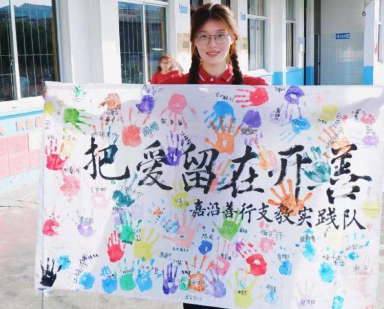 我们生来就是白纸,因为是我们,才有了色彩。活动的最后,迎着盛夏的阳光,实践队队员和孩子们在旗帜上印下一个个手印,让这份跨越了山海的相遇有迹可循。实践队队员和孩子们的笑容被定格在这眩目的阳光下,把爱留在开善,把记忆变成永恒。