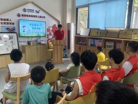 随着人类的不断开采开发,可利用水源已变得越来越少,节约用水是全人类迫在眉睫的一项重要任务。为了保护人类和动植物赖以生存的水资源,增强孩子们的护水意识,将爱水理念深入童心,7月25日实践队员们赴岳城街道龙井社区开展了爱水护源、节约用水,绿色环保、垃圾分类知识宣讲活动。在这次爱护水源、绿色环保知识科普宣讲中,实践队员在PPT上向孩子们展示了不节约用水的后果与危害,让孩子们明白了节约用水的重要性。为了加深孩子们心中的爱水环保意识,实践队员们组织了一次趣味绿色、爱水知识竞答,孩子们积极踊跃地与实践队员互动,发表自己有关节约用水的观点与看法。最后实践队员和孩子们在庄严郑重的宣誓中,结束了此次活动的学习。