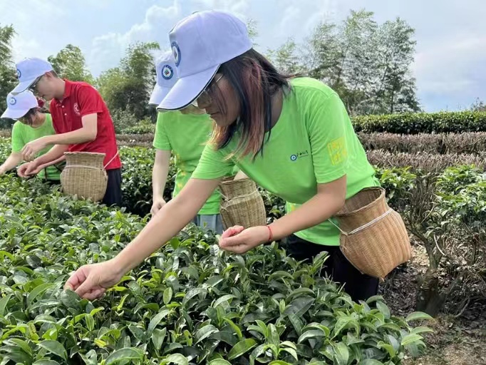 图为团队成员于布央村茶叶基地采茶。