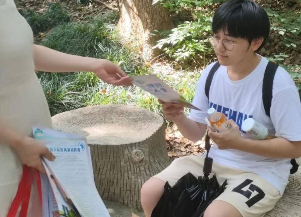 宣传用药知识 增强安全意识。冬海棠志愿服务队来到戴安澜烈士墓,向路人宣发医药知识科普传单开展以“医药知识科普”为主题的宣传教育活动。烈日炎炎,队员们的热情高涨,向路人发放医药知识科普宣传单,讲解相关医药知识,并且对路人提出的问题耐心解答。
