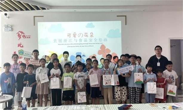 在邻里社区的“食时关心,携童共进”活动中,微尘小队通过食品安全知识宣讲、健康饮食理念推广和美丽浙江建设成果宣传,让食品安全意识、健康膳食习惯深入童心,助力“小候鸟”的健康成长。此外,小队成员还组织“小候鸟”们参与美丽浙江主题绘画活动,培养了他们的创造力和想象力,增强社区儿童对美丽浙江建设的认识。最后,小队成员前往晨光社区,开展“童趣食光,浙里送清凉”活动,通过冰粉、凉茶的制作和为户外工作者送清凉的活动,让小朋友们体会到劳动人民的艰辛和伟大,并培养了他们的爱心和责任心,让环保意识和公益思想深入童心。微尘小队成员带领孩子们关心关爱环卫工人,带来了积极正面的思想导向,增强了他们的参与感与获得感,让孩子们切实参与到美丽浙江的建设之中,为他们的暑假以及今后的生活留下了一个美好的回忆。