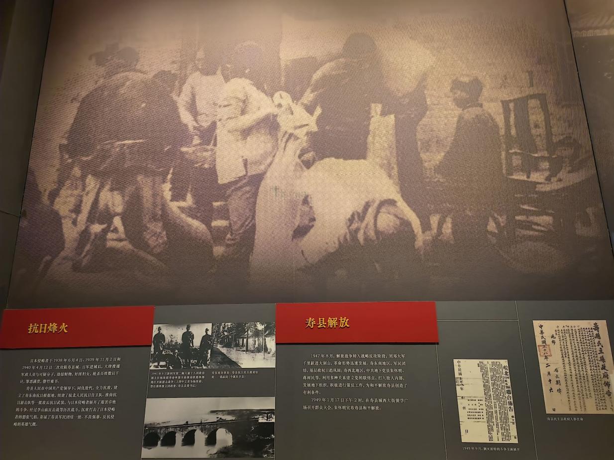 将目光从楚文化中收回,时间来到近代。寿县是国家历史文化名城,不仅历史悠久,文化底蕴深厚,也是一块红色热土,具有光荣的革命传统,党的活动时间较早,是安徽省第一面党旗升起的地方,在这里诞生了安徽最早的党组织—中共小甸特支。1929年5月9日,寿县县委给中共中央的报告中记载:“寿县在民国十一年,就有二三同志的组织,当时是党的婴儿的时候。”在寿县大地成长的革命队伍不断发展壮大,并投入抗日战争和全国解放战争中,为中华人民共和国的诞生做出巨大贡献。