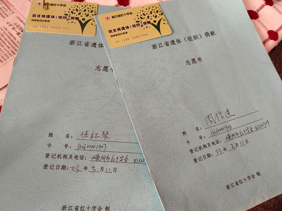 图:周爷爷与任奶奶的遗体(器官)捐献志愿书