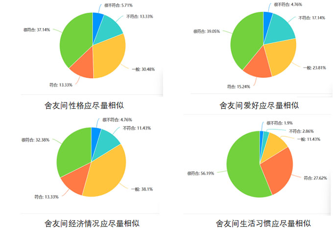 通过调查问卷,小组成员完成新型宿舍分配系统初步规划。为了检验分配系统的可行性,小组成员扎根实践,结合模拟新型宿舍分配系统对填写问卷的同学进行了线下采访。从采访中,同学们也认证新型宿舍分配系统确实改善了同学们的生活,也促进了同学们与跟自己更加匹配的室友的交往,使同学们的大学生活更加幸福。