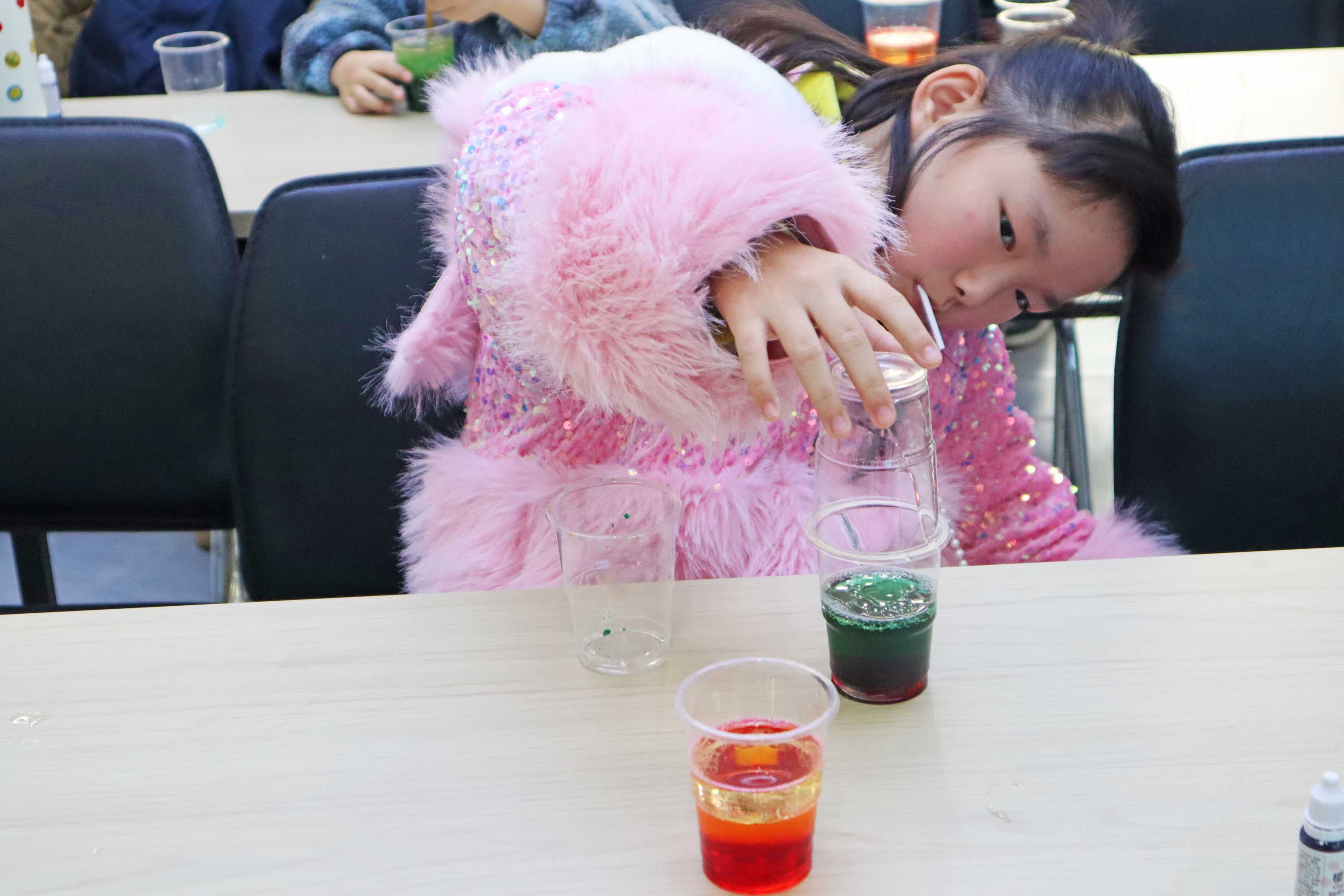 在教学过程中,我们发现,孩子们往往会对颜色鲜艳、反应剧烈的实验感兴趣,在后续的授课中,主讲员们也据此进行了适当的教学调整,成果显著。小朋友们从一开始的陌生到之后的熟悉,在课堂上也不再拘谨,而是踊跃地提出问题,大胆地说出自己的思考。看着孩子们童稚而热情的面庞,我们也第一次感受到了传道授业者的欣慰和自豪!我们希望,能够创造一种全新的课堂体验,以大手牵小手的方式,在传授孩子们科学知识的同时,培养他们对科学的敏锐眼光和独立思考的能力。