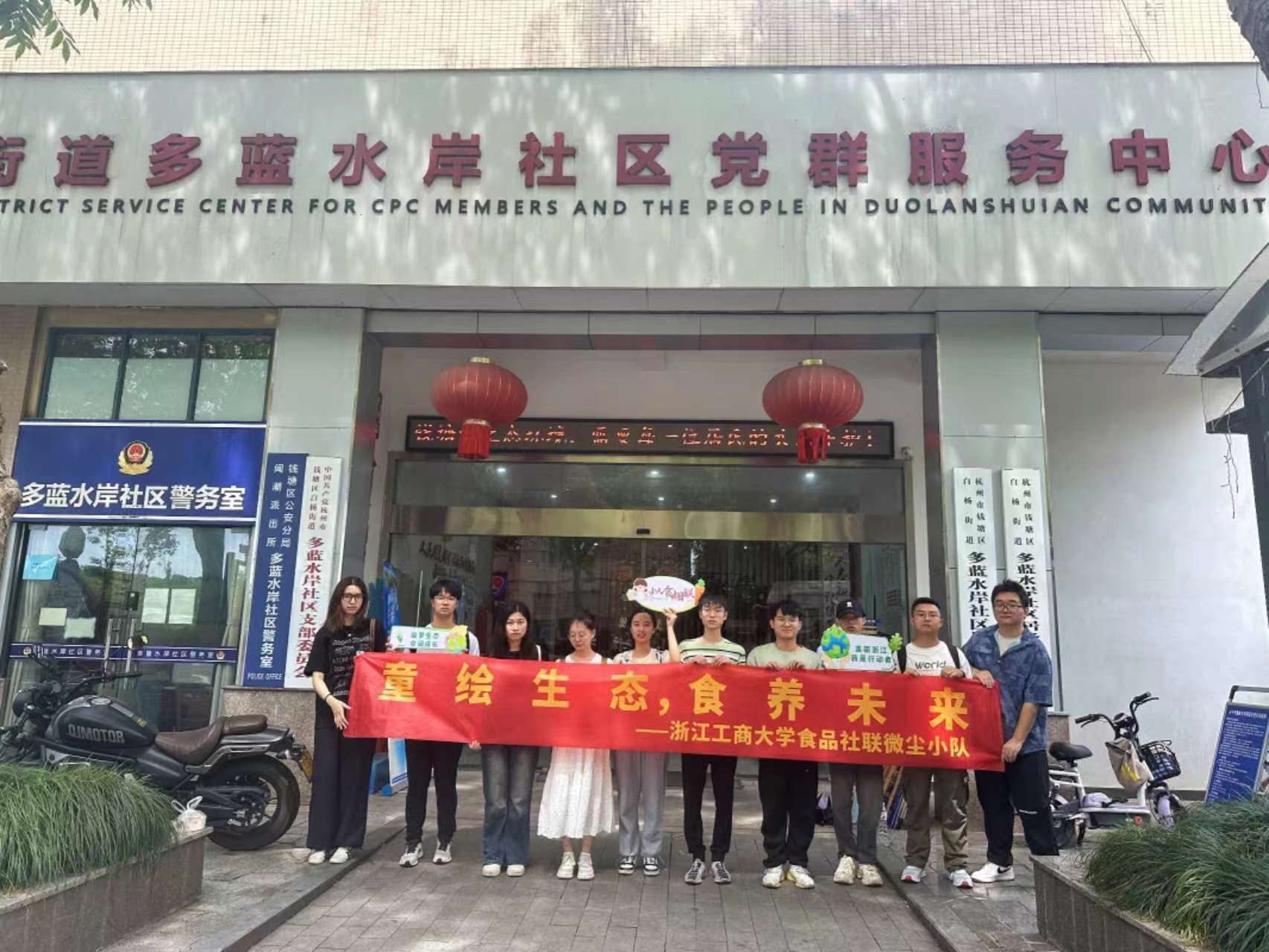 “民以食为天,食以安为先”,生态安全与食品安全在当今社会的重要性不言而喻。2024年7月上旬,浙江工商大学食品与生物工程学院社团联合会暑期社会实践小队——微尘小队走进多蓝水岸社区开展暑期社会实践活动,为社区的孩子们带去了一场以“童绘生态,食养未来”为主题的生态与食品安全知识普及活动。微尘小队希望通过本次暑期社会实践活动让孩子们在活动中培养环保意识与食品健康意识,为绿色健康未来播撒下希望的种子。