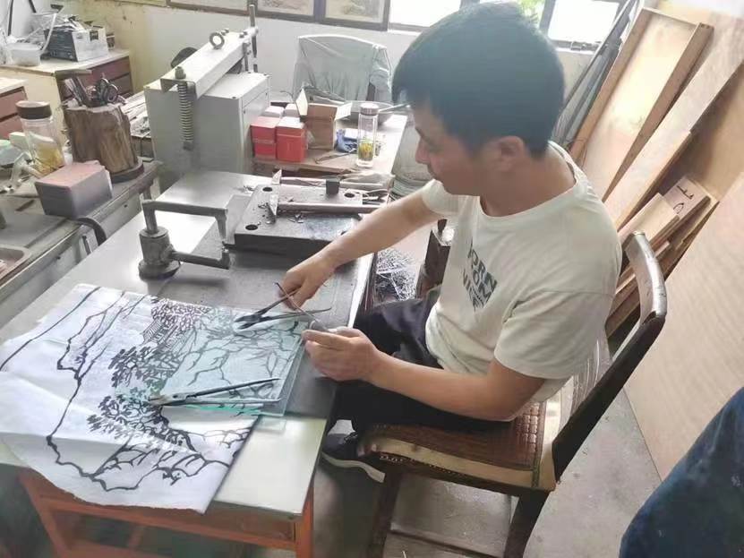 图为团队成员尝试铁画制作。团队成员 李立扬 供图