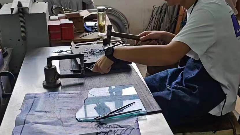 最激动人心的环节莫过于亲自上阵,尝试制作铁画。在师傅的悉心指导下,团队成员们拿起锤子和凿子,开始了他们的创作之旅。虽然初试身手,作品略显稚嫩,但每一件作品都是团队成员们对铁画艺术理解的体现,也是他们与传统工艺对话的见证。