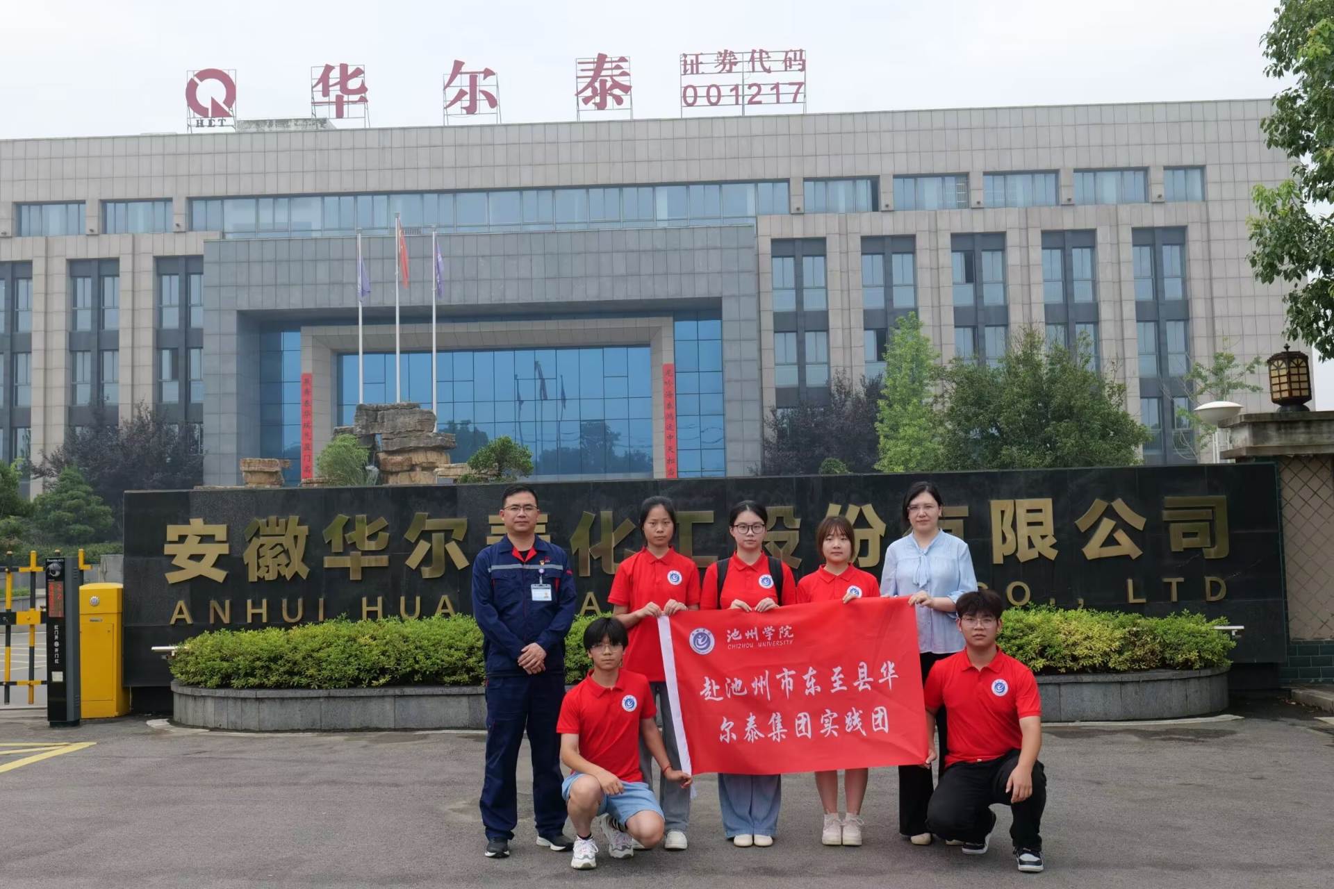 实践的第一站便是华尔泰集团总部,实践团在集团经理王建军的引领下,详细了解到华尔泰集团的发展历程、成果取得,比如全国最先进的微通道连续流硝化反应工艺技术和航天炉煤气化工艺技术,以外还获得众多技术专利,成为名副其实的池州市最大化工企业。同时,生态恶化和环境污染一直是化工企业发展的受限因素,华尔泰集团针对性地加大技术投入将污染减到最小,积极践行党建要求,肩负着社会责任,发挥自身优势和能力,带动区域村镇发展,进行各类帮扶推动区域经济发展,加快乡村振兴的进程。