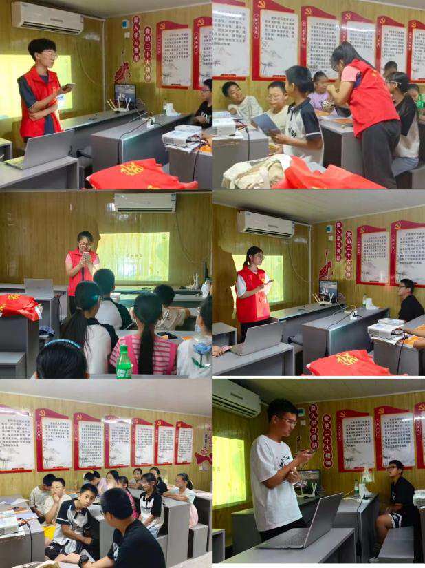 课程涵盖了语文、数学、英语等基础学科以及手工、编程入门、心理学和军事理论等兴趣课程。为激发孩子们的学习热情,综合事务组准备了丰富的奖品,并利用视频、游戏等互动方式提高他们的学习积极性。同时,支教队积极与学校两个社团开展协作,开展了“红色剧本杀”“重温马克思主义历程”等特色活动,寓教于乐,润物无声。