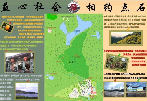 深入探索,细致调研,实地走访了脐橙种植园、深湖水库、荔枝林、千村千园以及锦石庵等独特景点。通过走访、调查,益心社会实践团队结合当地风貌及丰富文化等特点,设计了与当地特色相契合的文旅宣传图册,并根据当地旅游资源制作了宣传短视频、风景图册等,以此有效地展示点石村的自然之美与文化底蕴,进而促进其文旅经济的蓬勃发展,为点石村的文旅发展贡献团队的力量。