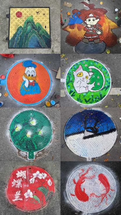 图为“育峡筑梦”突击队部分井盖绘画成果。李杰供图。