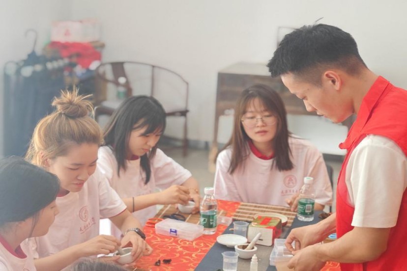 实践团成员勇担新的文化使命之责,将党史教育与文化传承进行有机融合,在天津市党的建设与党史故事思政课重点实验室,打造理论学习传播大课堂,实践团成员通过讲述“航母之父”刘华清与胡福明教授的感人故事,引领青少年穿越时空,与党的光辉历程对话,开展了一堂生动的爱国主义教育课。在北辰区果园新街新时代文明实践站,实践团成员亲炙非遗沉香技艺,从研磨至起篆,每一步都承载着对传统文化的深情与敬意,沉香之韵,如同清泉,沁润心田,坚定了实践团成员传承与创新我国优秀传统文化的信念。理论与实践齐飞,党史光辉与非遗魅力交相辉映,共同绘制新时代的文化新画卷。