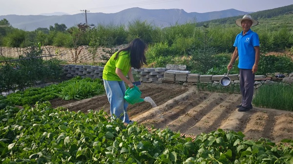 图为实践团队员在帮村民浇地。 张慧丽摄