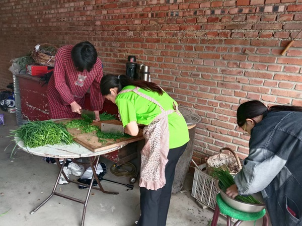 实践团踏入银里村,体验了一场从田间到餐桌的温馨之旅。在村民的热情陪同下,队员们手持镰刀踏入韭菜田,亲身体验割韭菜的乐趣,感受农耕文化的独特魅力。随后,大家围坐一起,共同动手包饺子,将田野的馈赠转化为餐桌上的美味佳肴。热气腾腾的饺子不仅温暖了大家的胃,更拉近了心与心的距离。餐桌上,队员们与村民共话乡村振兴的美好愿景,以实际行动为乡村振兴贡献青春力量。