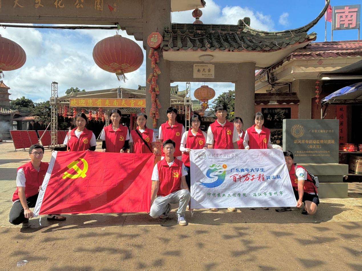 (通讯员:陈德仪 徐杨龙)为深入学习贯彻习近平总书记视察广东重要讲话、重要指示精神,助力“百县千镇万村高质量发展工程”行动落深落实,引领教育广大青年在社会实践中“受教育,长才干,做贡献”。近日,仲恺农业工程学院“百千万工程”突击队经贸学院仲恺追“风”助农实践团队深入湛江市雷州市调风镇开展2024年广东青年大学生“百千万工程”突击队行动。实践团队以以十一个“1”为重点任务,开展战略协议、文旅宣传、产业调研、七彩假期、绿美乡村、直播助农等实践内容,团结青年力量,为调风镇“百千万工程”注入青春力量。