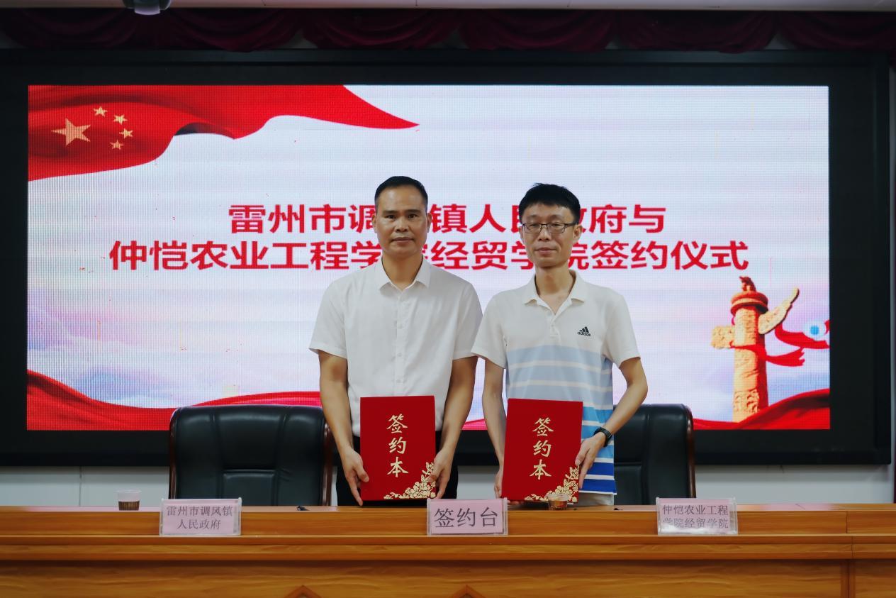 7月19日,仲恺农业工程学院经贸学院与雷州市调风镇政府签订战略合作协议,推进调风镇“百千万工程”科技创新发展、人才队伍建设的创新探索,深化校地共建,把“镇域所需”和“高校所能”深度融合,借高校资源赋能镇域发展,为调风镇经济社会高质量振兴发展蓄势赋能。同时,通过此次合作,未来也将有越来越多的仲恺学子奔赴调风镇,在乡村振兴的大舞台上建功立业,为全面推进乡村振兴作出青年的贡献。