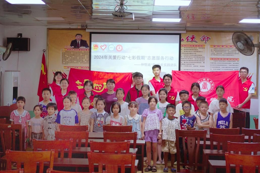 七彩假期,一场爱与陪伴的双向奔赴。在入选由团中央青年志愿者行动指导中心、中国青年志愿者协会秘书处联合遴选的2000支2024年关爱行动“七彩假期”志愿服务示范团队后,仲恺追“风”助农实践团队紧密联系地方,积极响应各级团委号召,围绕思想引领、国防教育、文化传承、文明生活、身心成长、科技创新、快乐学习、艺术素养、急救知识、安全教育十大模块设计课程,开展了20节次课堂,使用课件28个,教具320份,服务儿童600人次,用实际行动为调风镇的孩子们打造“七彩假期”。