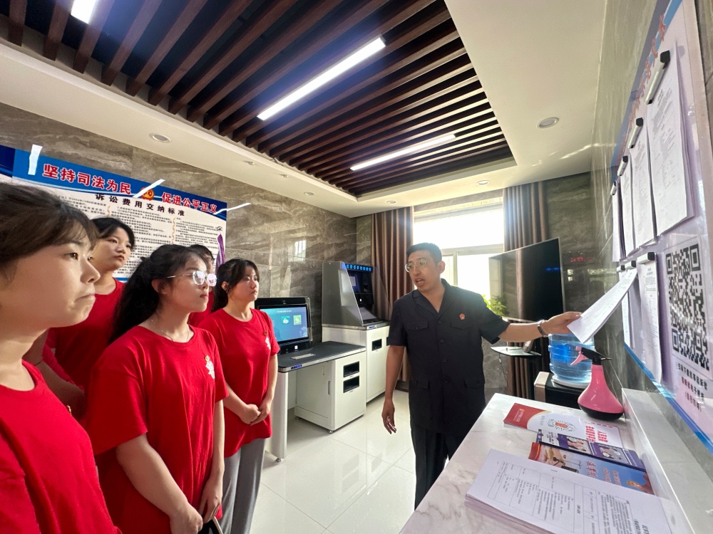 图为实践团成员了解华池县人民法院新时代工作方式 陆瑶摄
