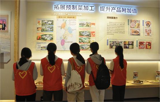 除了走访养殖户外,队员们还参观了合洋水产的“渔世界”渔业加工与物流园展馆和预制菜食品加工厂。在这里,他们近距离接触到了现代化水产养殖技术和产业链的各个环节:展馆内丰富的图文资料和讲解员生动的讲解,让队员们深刻感受到了饲料鳜养殖产业的巨大潜力和广阔前景;食品加工厂的先进设备和生产效率,让队员们领会到渔业产业链的蓬勃朝气和青春活力。