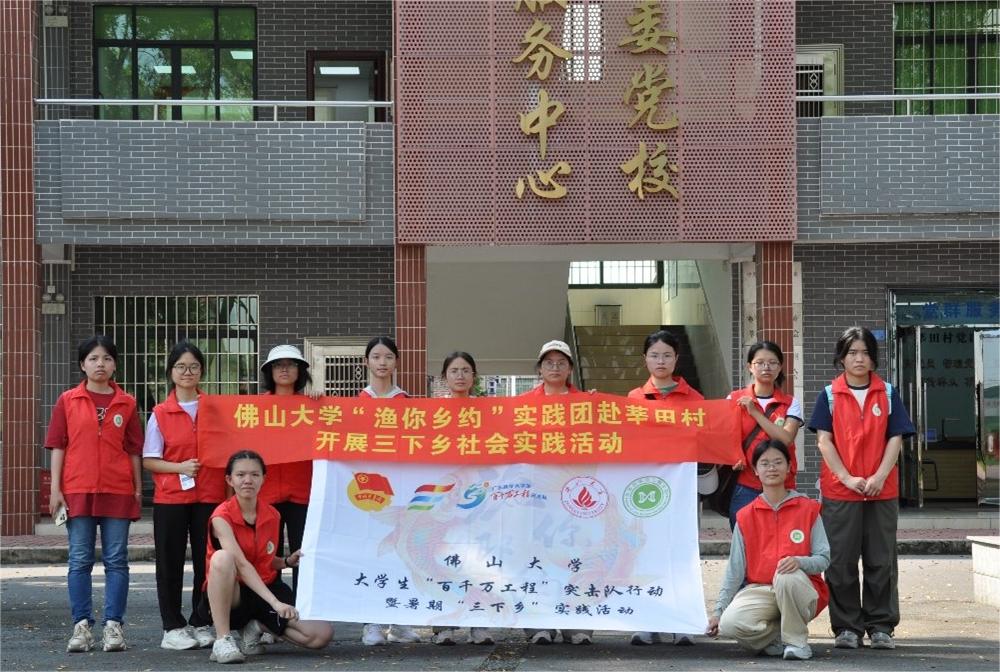在骄阳似火的七月,来自佛山大学的渔你乡约“百千万工程”突击队走进位于佛山市三水区大塘镇的莘田村,准备开展一场别开生面的“三下乡”社会实践活动。在这里,他们共走访了2000多亩的鱼塘,与一线渔民进行了一对一的深度访谈,深入了解当地的饲料鳜发展现状和养殖难题;实地考察当地渔业“三产融合”情况,发现渔业高质量发展背景下产业转型的新质生产力;同时,队员与村民进行了亲切交流,共同探索如何通过科技和文化的力量推动乡村的发展。
