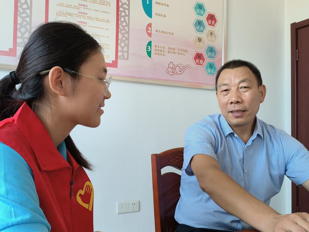 李秋慧对村主任雷如兴进行访谈(图 朱雨馨)