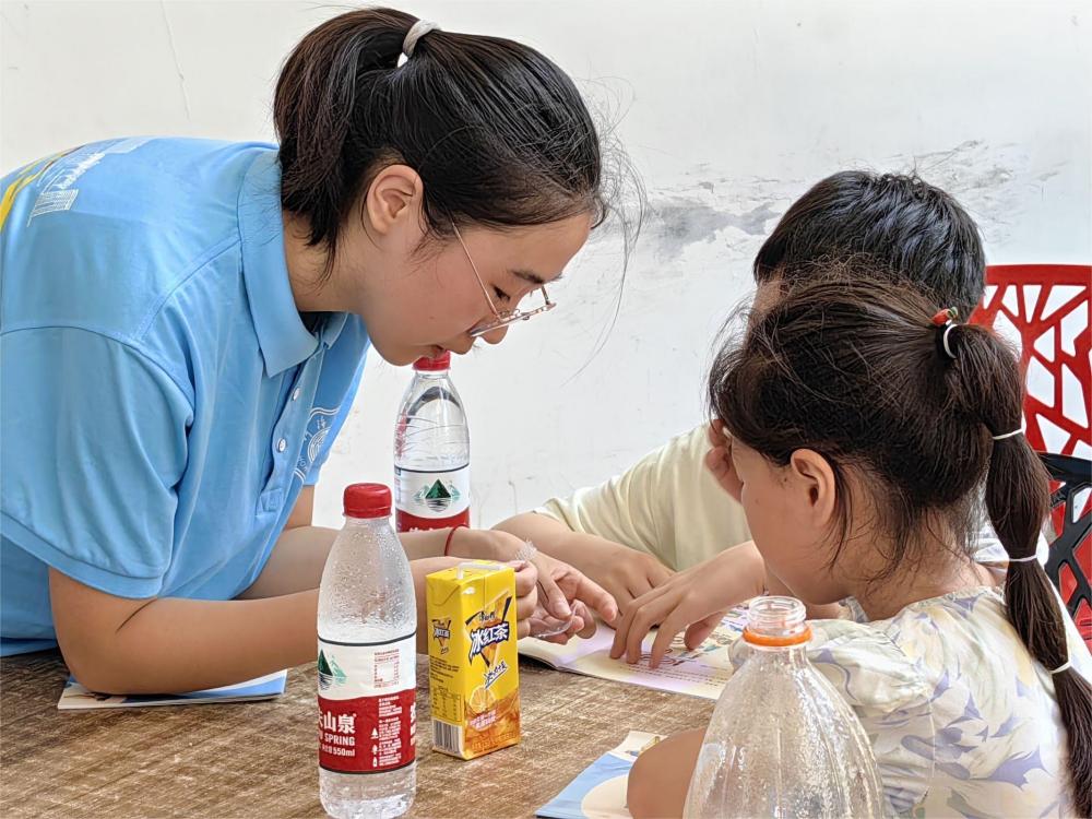 队员带领小朋友制作水龙头起泡装置(图 赵馨)